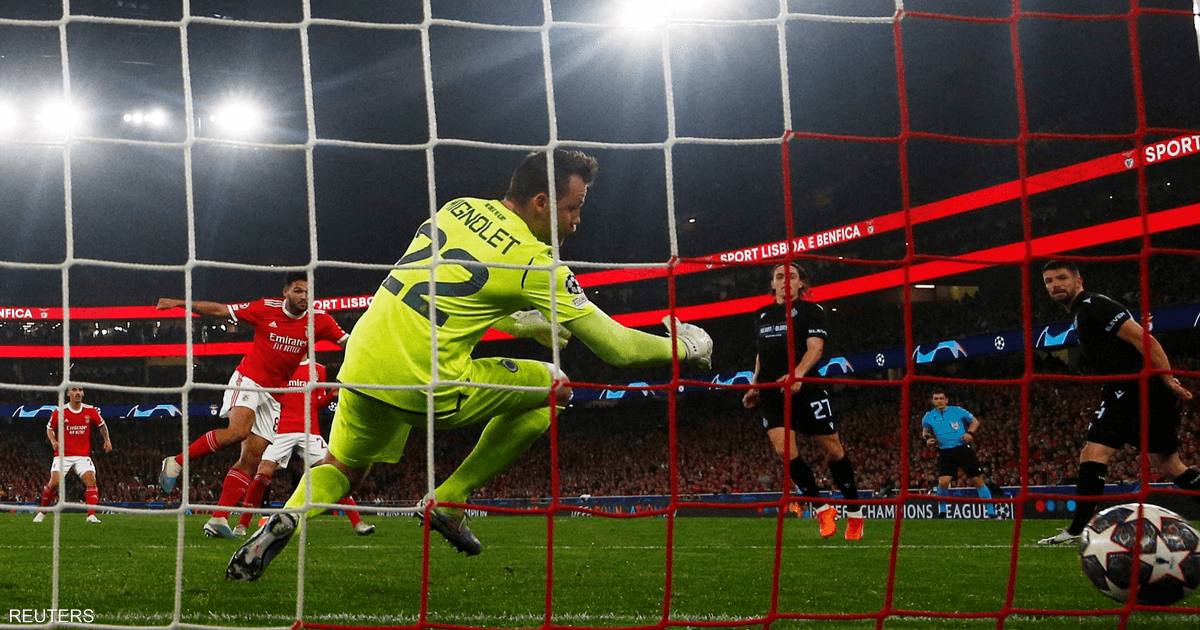 وبعد فوزه الحاسم 2-صفر في مباراة الذهاب في بلجيكا، سيطر بنفيكا على مجريات المباراة منذ البداية وتفوق على كلوب بروج حيث تقدم في الدقيقة 38 في هجمة مرتدة بدأها جونسالو راموس الذي انطلق من الناحية اليسرى قبل أن يرسل تمريرة عرضية باتجاه القائم البعيد حيث كان لدى رافا سيلفا الوقت للسيطرة على الكرة قبل أن يراوغ اثنين من المدافعين بحركة واحدة قبل أن يسدد بالقدم اليسرى في الشباك.